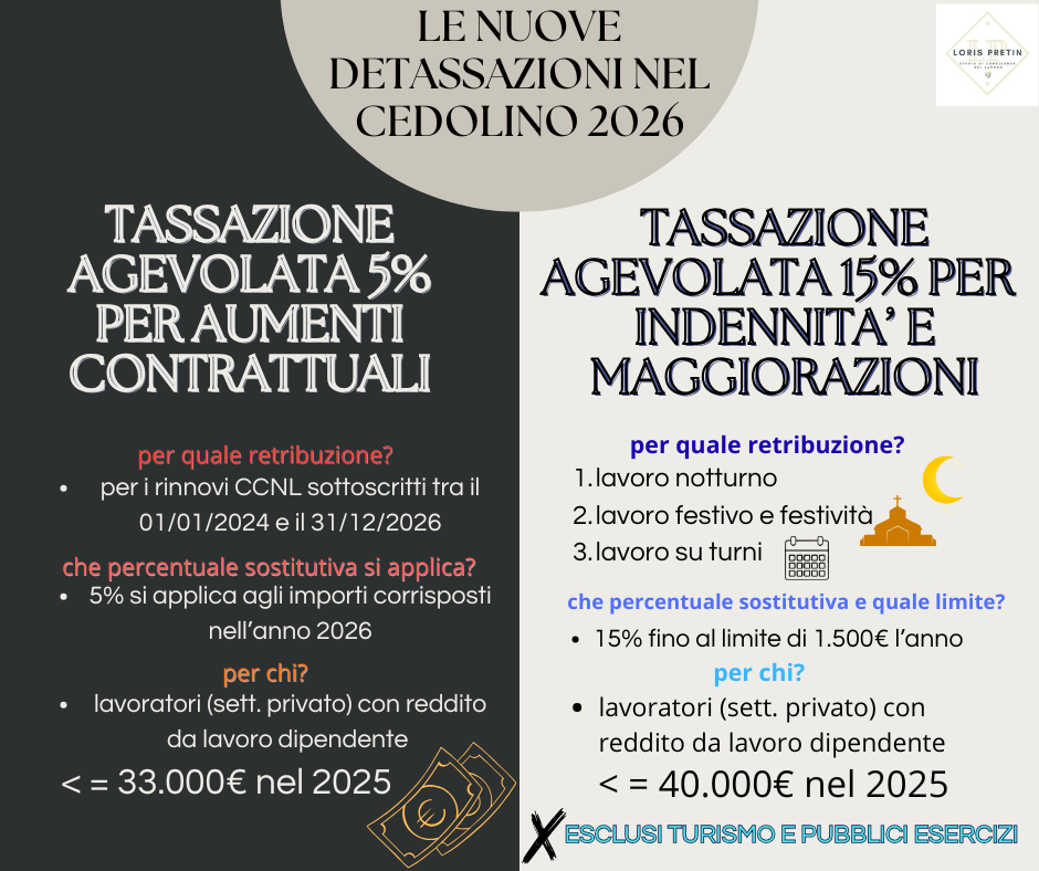 Imposta sostitutiva del 5% sugli aumenti retributivi derivanti da rinnovi dei CCNL (sottoscritti tra il 2024 e il 2026) applicata agli incrementi erogati nel 2026.